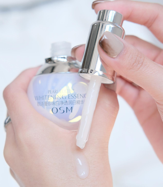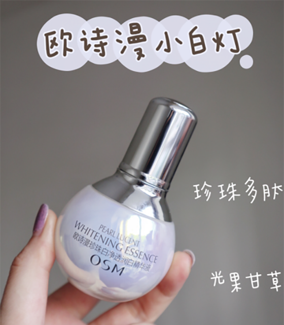 歐詩漫小白燈美白精華液還帶有珍珠般光澤,香味 有一種特別的中式典雅,使人愉悅,涂在皮膚上感 覺質(zhì)地水潤,簡單打圈就能快速吸收,感覺皮膚瞬 間喝飽水,立刻變得清透明亮,效果明顯。